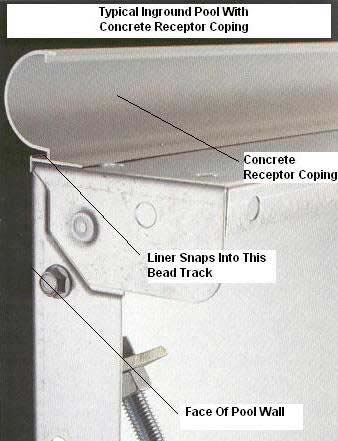 Some pools are designed for overlap liner installation, in which the liner is laid over the top of the pool walls and held in place by tacks, staples or a wooden plate. You may want to update this to the more conventional beaded (or hung) method of installation by attaching a plastic extrusion to the walls. This can be purchased for mounting to either the top or front of the pool wall.