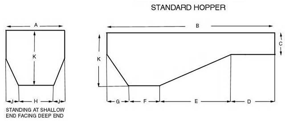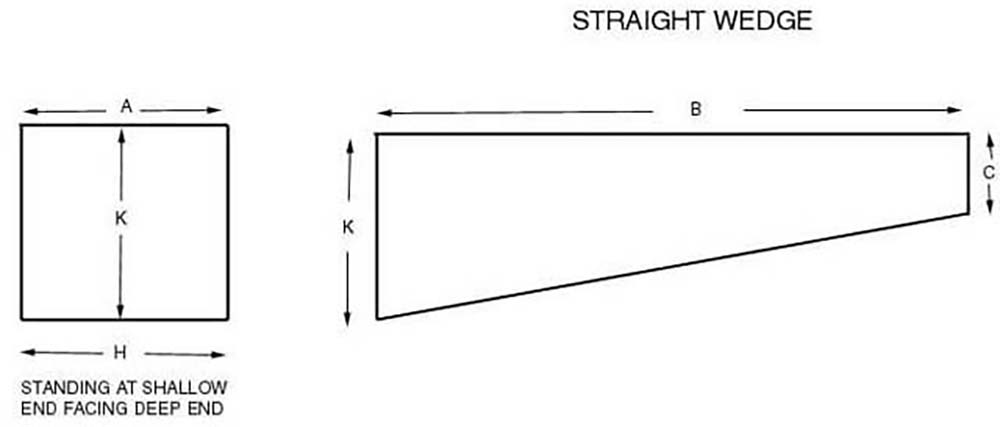 There are many different bottom styles for various styles and shapes of pools. Following is a handful of possible bottom configurations that you might see in the field. As you can see, it is absolutely necessary to measure each and every pool for a replacement liner. Many of the bottoms are modified from the standard manufacturer's specifications when the pool is originally excavated. Sometimes ground water, rock ledges or other factor's make it necessary to deviate from the standard specifications.